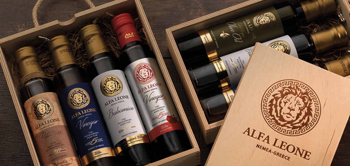 Součástí balení jsou čtyři lahve o objemu 250 ml, obsahující výběr nejkvalitnějších produktů značky ALFA LEONE – vinné octy, olivový olej nebo čistý hroznový sirup. Produkty jsou vyráběny z přírodních surovin, zrají v tradičních dubových sudech a vynikají bohatou chutí, intenzivním aroma a vyváženým charakterem.