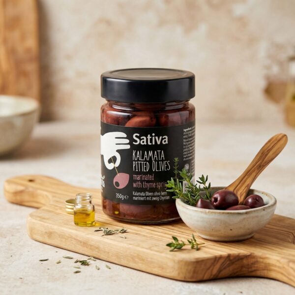 Prémiové olivy Kalamata z Řecka, známé svou tmavou barvou, pevnou dužinou a výraznou, lehce ovocnou chutí. Jsou naložené v jemném nálevu, který zachovává jejich přirozené aroma a kvalitu.