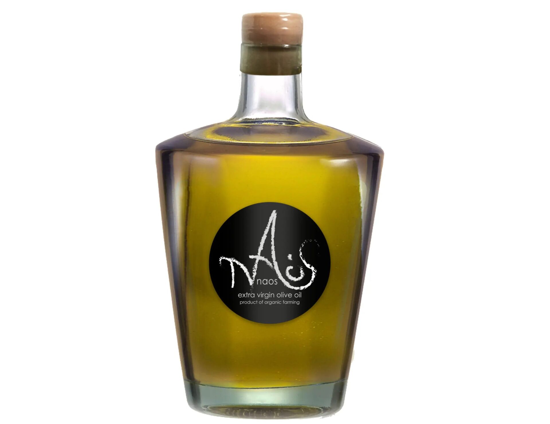 Jsme důslední při výběru našich partnerů, abychom zajistili, že dodržují zásady ekologického zemědělství a certifikace Auditního a certifikačního institutu ekologických produktů (DIO), vycházející z evropských předpisů. Čerstvé olivy obsažené v „Naos“ pocházejí z horských hájů jižního Peloponésu. Vyznačuje se sytě zelenou barvou a ovocnou chutí s lehce pepřovým závěrem. Díky šetrnému zpracování si olej zachovává maximum živin. Je k dispozici v elegantních skleněných nádobách o objemu 500 ml. Naos cestuje po celém světě a zvyšuje povědomí o bohatství řecké země.