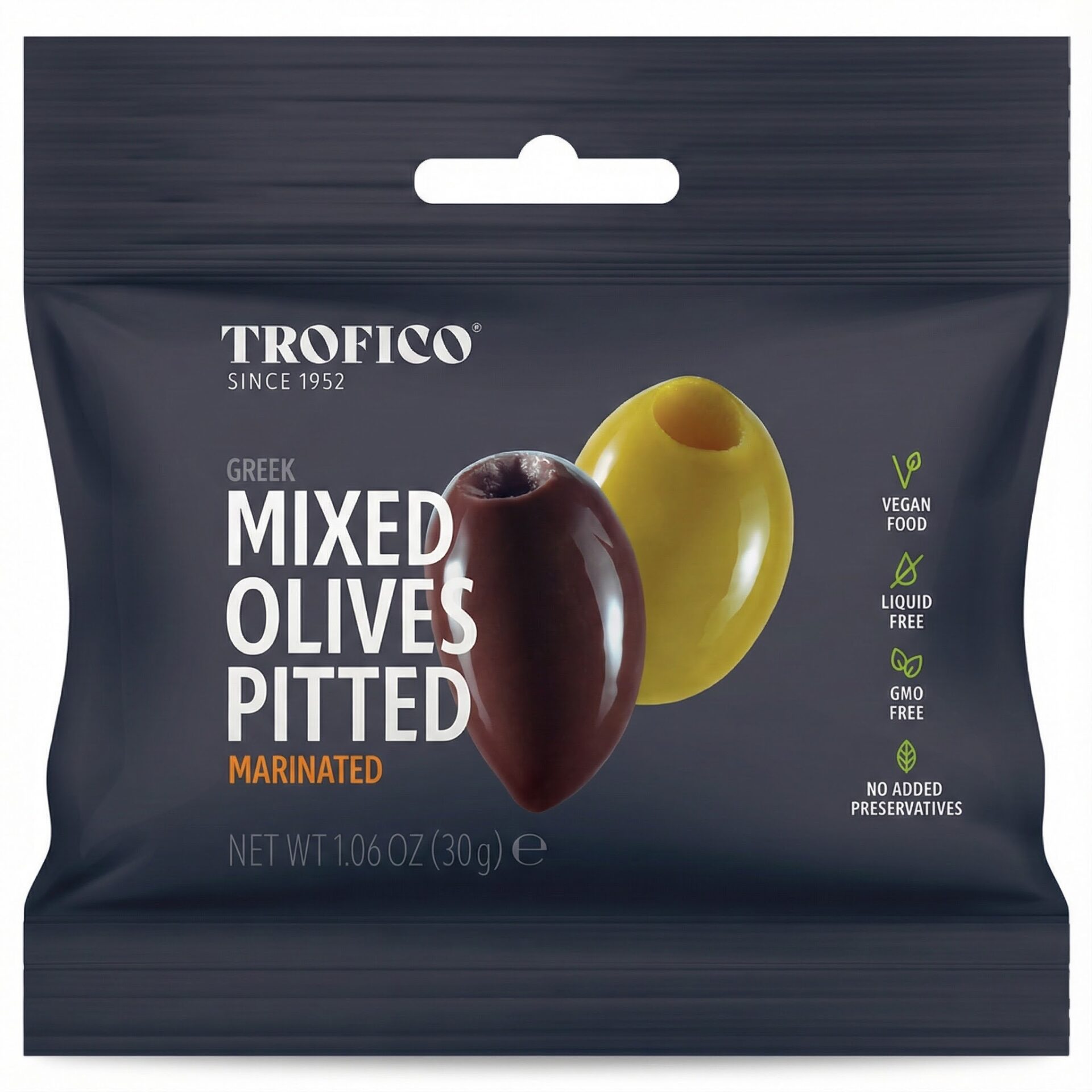 Marinovaný snack z mixu oliv Kalamata a zelených oliv, ochucený extra panenským olivovým olejem a kořením. Praktické balení pro rychlé občerstvení kdykoliv během dne.