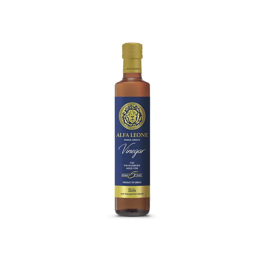 Prémiový vinný ocet z odrůdy Agiorgitiko z oblasti Nemea, zrající 5 let v dubových sudech. Intenzivní chuť, bohaté aroma a elegantní charakter.